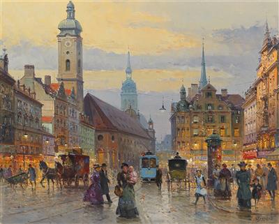 | Nocturnal Street Scene with the Heiliggeist Church and St. Peter’s Church in Munich | |