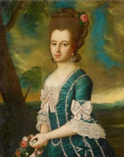 Porträt einer vornehmen jungen Dame vor Landschaftshintergrund