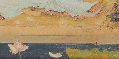 | Pencil , pen and ink and watercolour with heightening in gold and white on paper laid down on board ,frame | |
