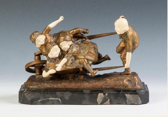 Gilt Bronze Sculpture of Children in a Wheelbarrow