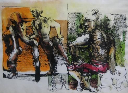 Ink and watercolor on paper