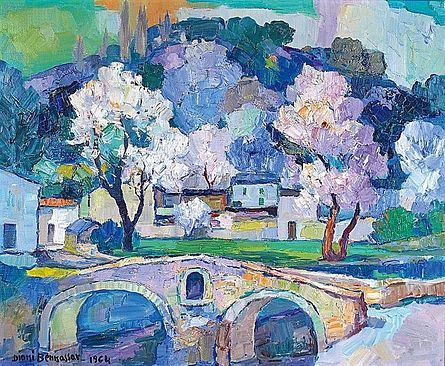 LE PONT ROMAIN ET LES AMANDIERS EN FLEURS