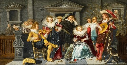 MERRY COMPANY MAKING MUSIC ON A TERRACE