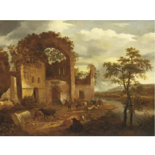 ARCHITECTURAL CAPRICCIO WITH PEASANTS AND CATTLE