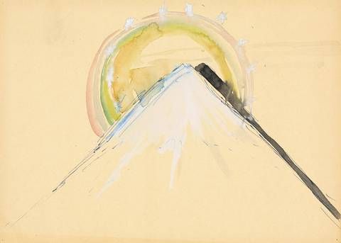 Watercolor gouache and blue ink on paper