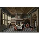 AN INTERIOR WITH LADIES AND GENTLEMEN DINING
