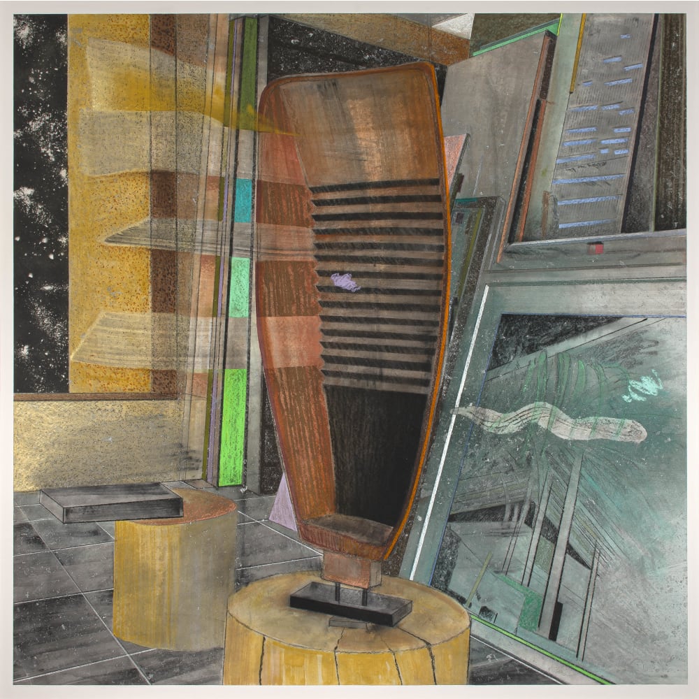 | Pastel , metallic dust and dry pigment on bonded fibre fabric | |