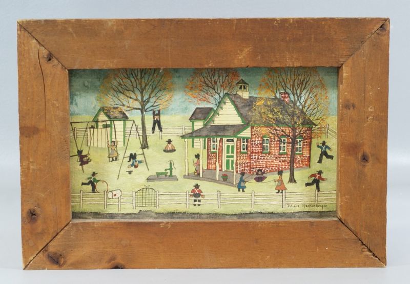 Amish Children Playing outside Schoolhouse