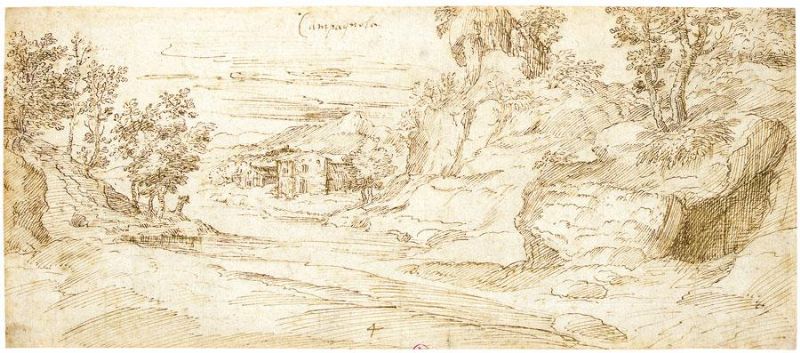 LANDSCAPE WITH A RIVER AND HOUSES BEYOND