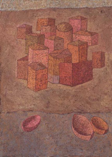 Tempera and sand on canvas