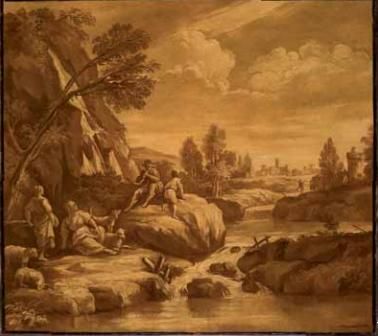 Paesaggio con veduta fluviale, pastori e armenti