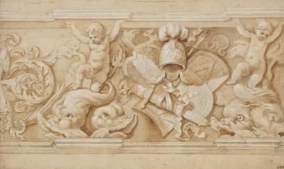 Projet de frise avec dauphins et trophées