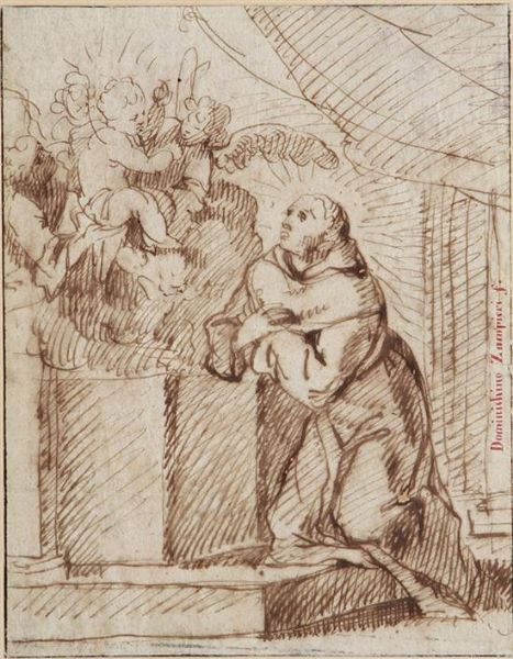 SKETCH OF ROBED MAN KNEELING AT ALTAR