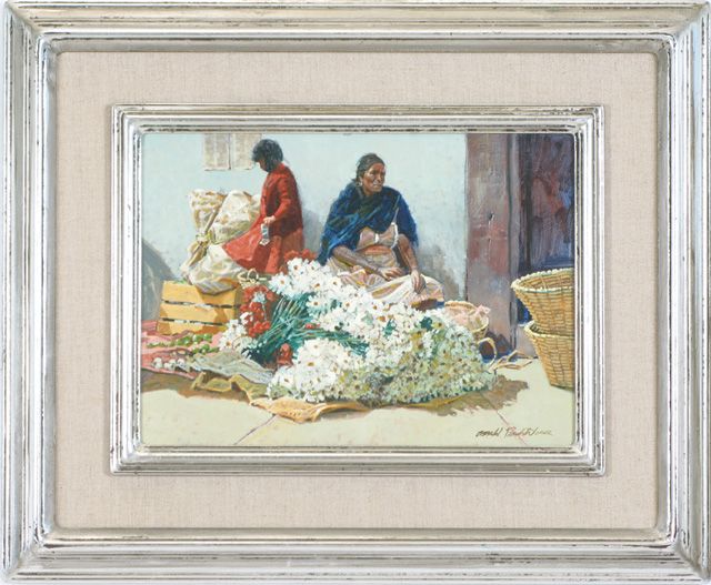 | The Flower Sellers. An Indian woman and young girl selling flowers, baskets nearby. | |