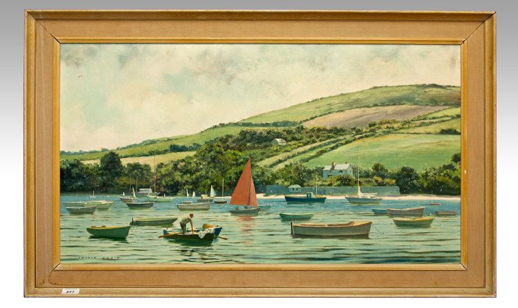 'Panoramic View Of Boats In Harbour Salcombe 1950's