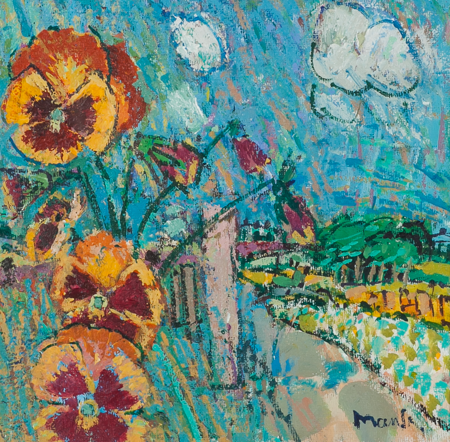 PANSIES IN A SUMMER LANDSCAPE
