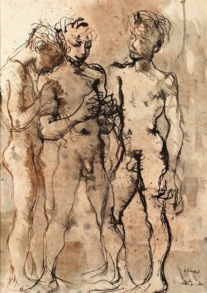 Ink and wash on paper on board