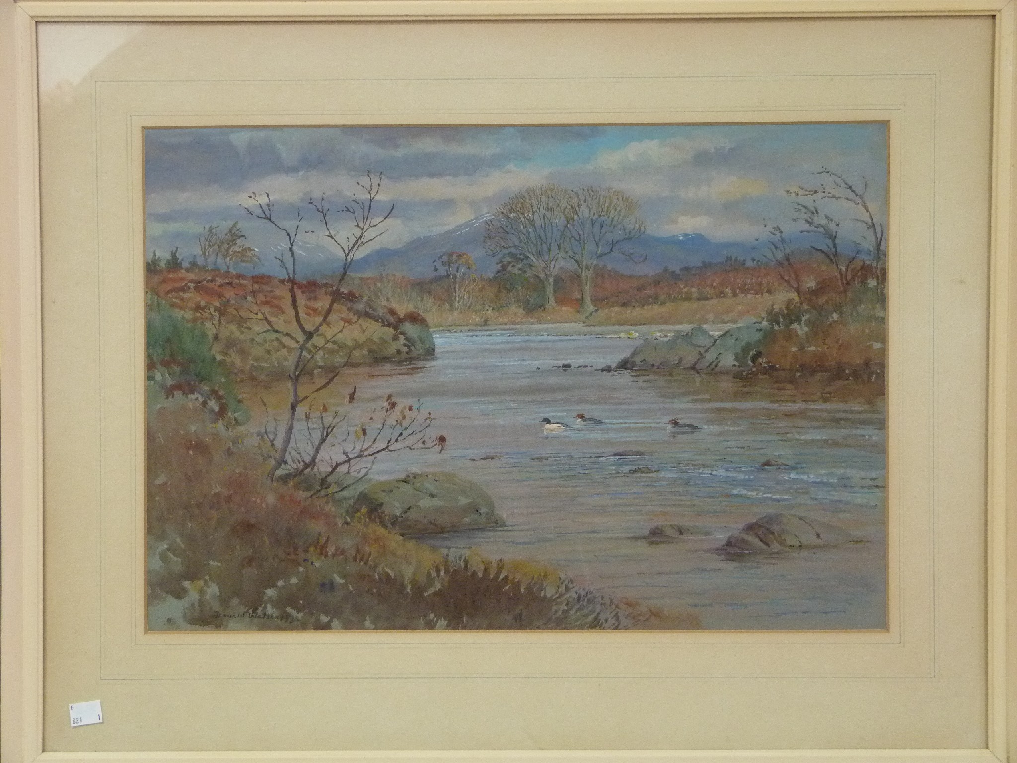 | Ducks on the water in a river landscape | |