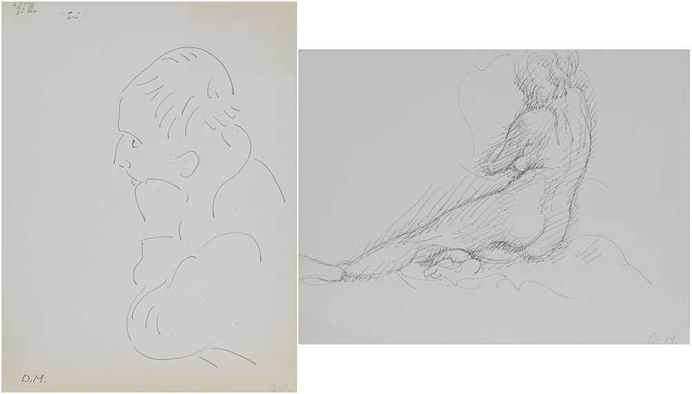 Two figural drawings: Nude