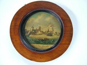 C -Print together with a pair of hand-painted ceramic tiles depicting cottage interior scenes - 3 Items