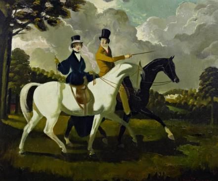 Couple riding in parkland