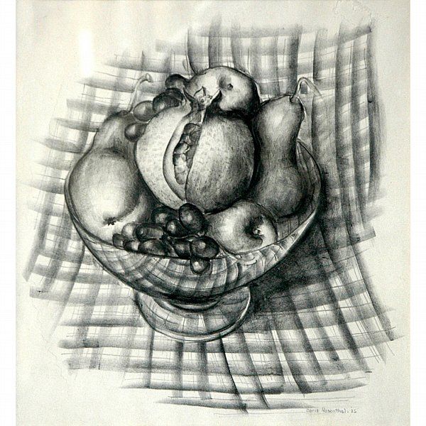 Still Life with Fruit in a Bowl on a Checkered Tablecloth