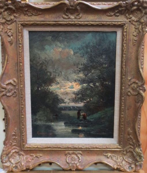 Figures by a stream