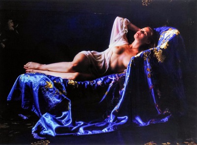 | Nude study of a young woman lying on a blue silk covered couch, No. 122 of 295 | |