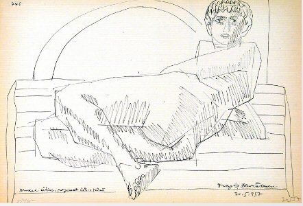 | Model intins, rezemat intro rina (Modèle allongé, appuyé sur un côté) | |