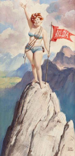 Hilda on Top of the World, Brown & Bigelow calendar illustration