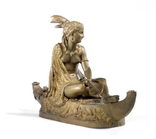 A NATIVE AMERICAN WOMAN ON A CANOE