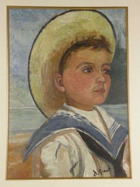 A sailor boy head and shoulders wearing hat