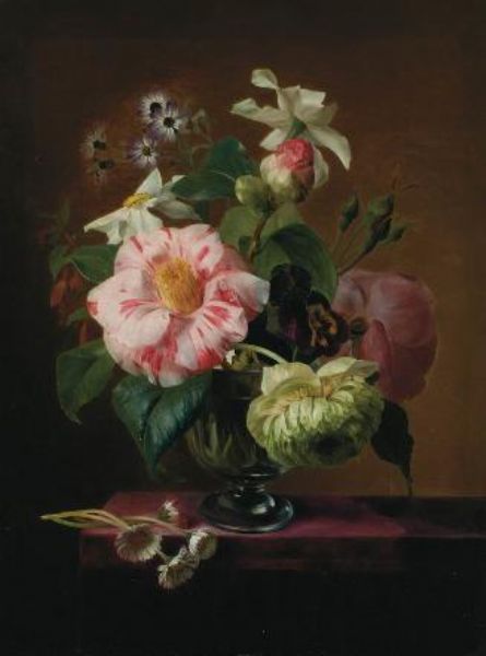 | Still Life of Flowers in a Crystal Vase on a Table Top | |