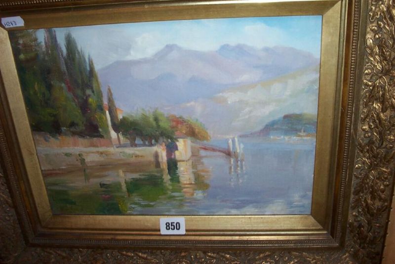 a continental lake scene with distant mountains