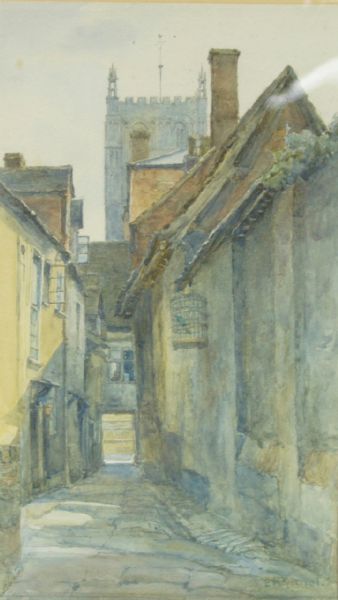 A partial view of Tewkesbury Abbey from Old Baptist Chapel Road