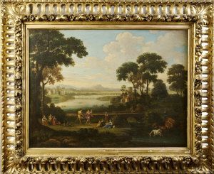 Figures Dancing in an Arcadian Landscape, with Distant Castle and River