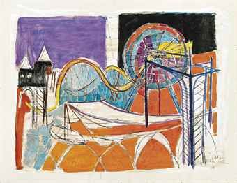 | A collection of abstract sketches, including studies of tress, landscapes and a fairground | |