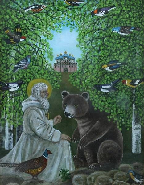 'St. Seraphim of Sarov II', Arthur Jeffress Gallery label on the reverse