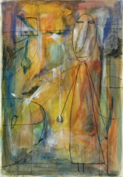 Watercolor gouache, pen and ink over pencil on paper