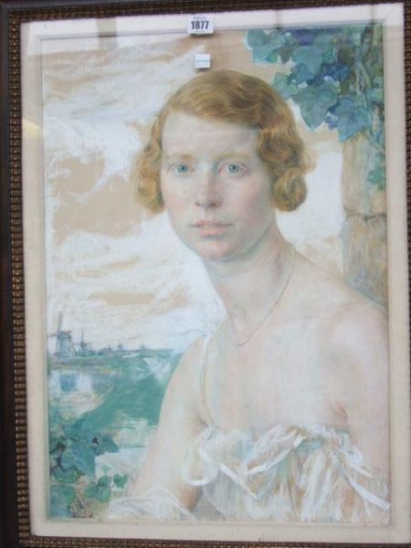 Portrait de Femme avec collier de perles