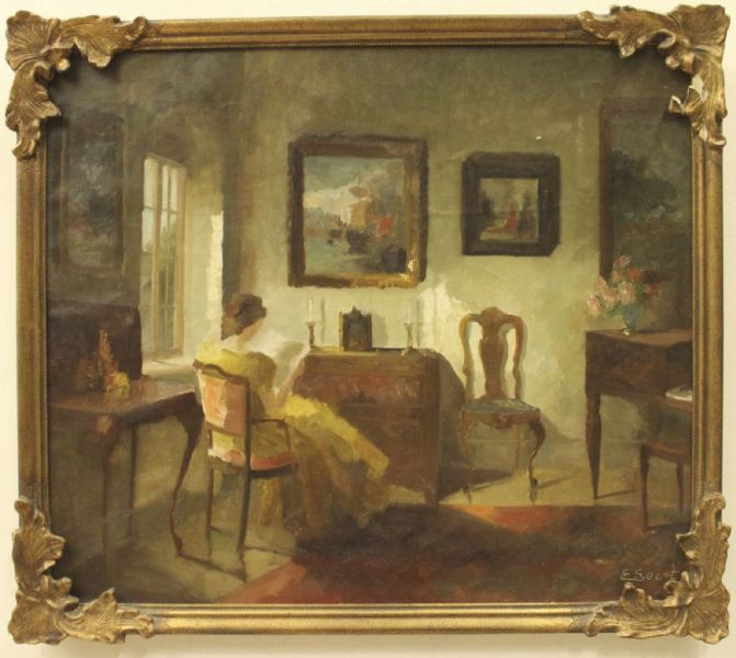 Interiör med läsande kvinna