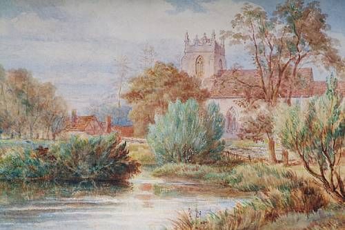 Church and Farm near the River at Ashoe, Warwickshire, 1860