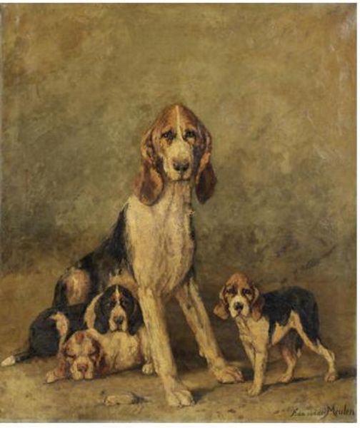 A French hunting hound and puppies