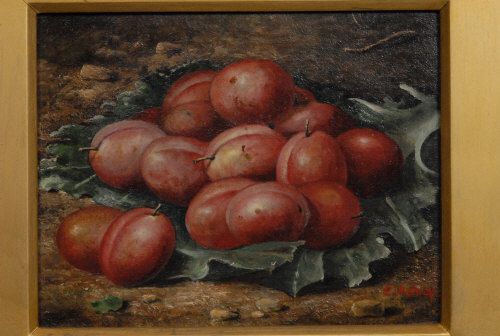 Still Life, Ripe Plums on a Mossy Ground