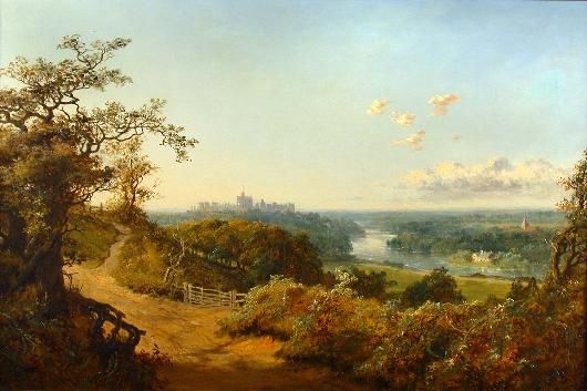 Windsor Castle from Coopers Hill Egham Lane Wraysbury Church and Magna Carta Island