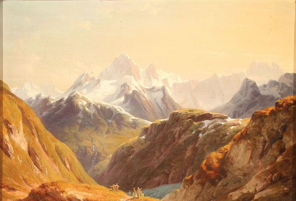 | View of the Finsteraarhorn Range with Travelers in the Foreground | |