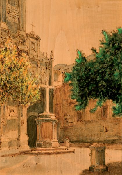 Frente a la iglesia