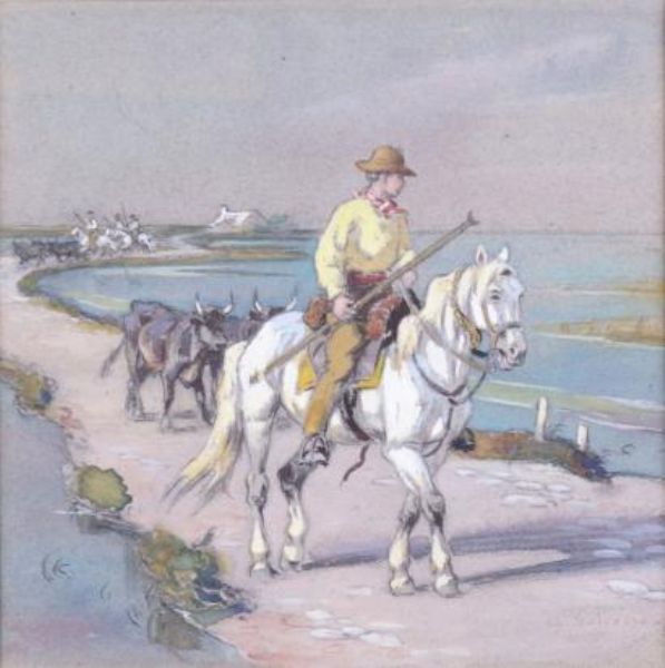 GUARDIAN ET SON TROUPEAU EN CAMARGUE