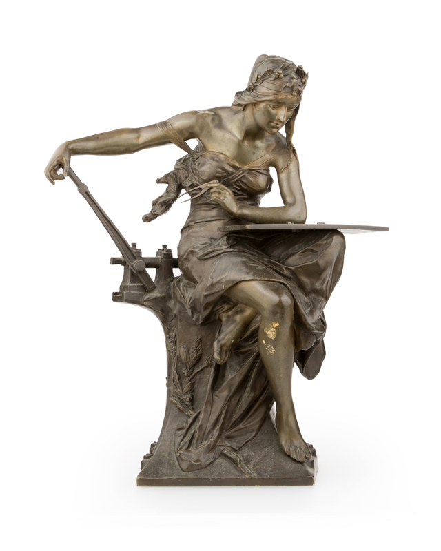| Classically dressed seated draftswoman, allegory of the railway industry | |