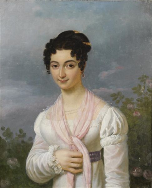 Portrait de jeune femme à l'écharpe rose